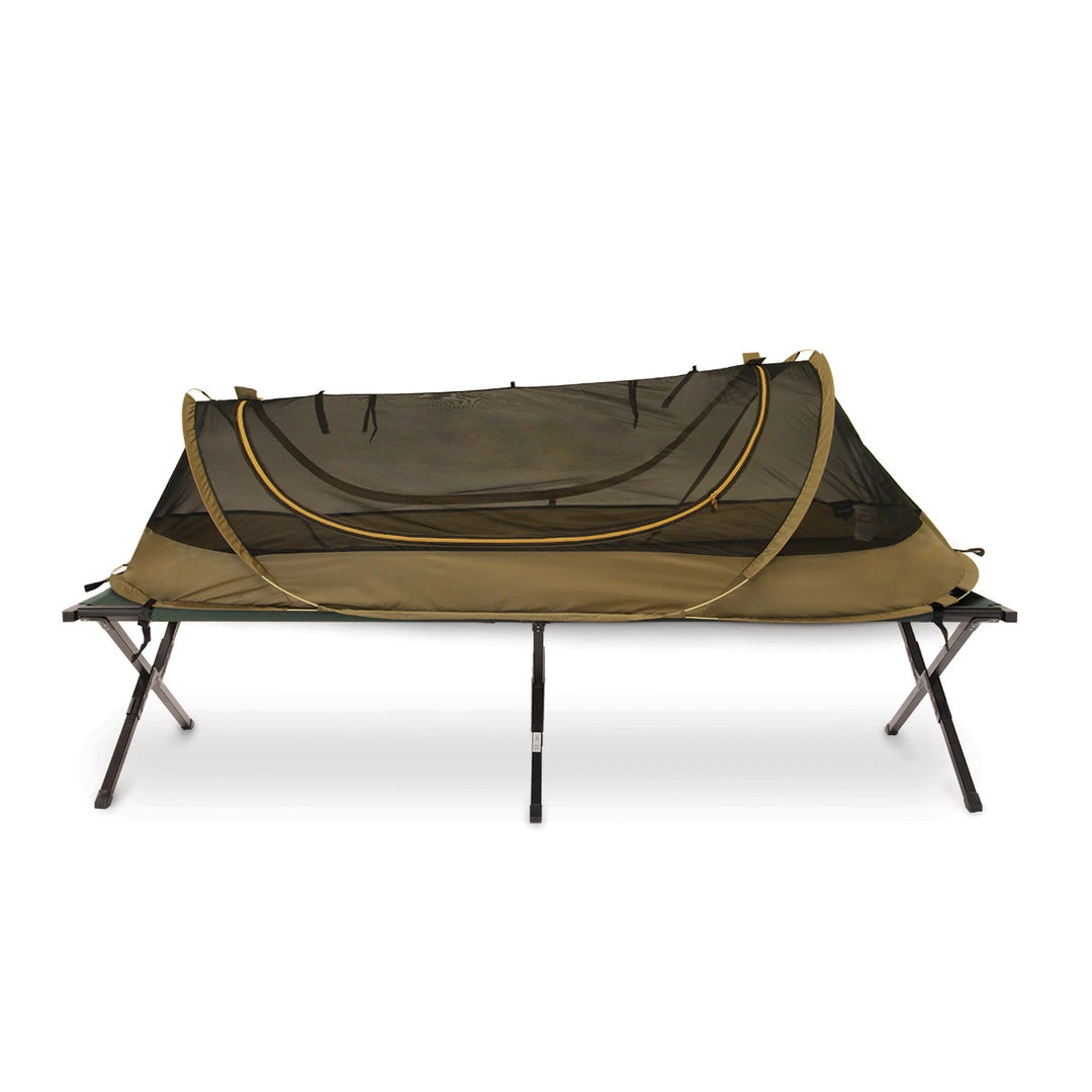 The Improved Bed Net System (IBNS) was originally designed to fit securely onto a military cot with webbing and side release buckles on all four corners. After initial fielding, we were informed that Marines liked the product so much that they were deploying it in the field as well. In response, we ruggedized the design, creating the capability to add a rainfly. We have since delivered hundreds of thousands on contract. After yet another round of improvements, we are proud to re-introduce the Burrow™ IBNS with enhanced capability, more user friendly features, and improved parts and fittings.