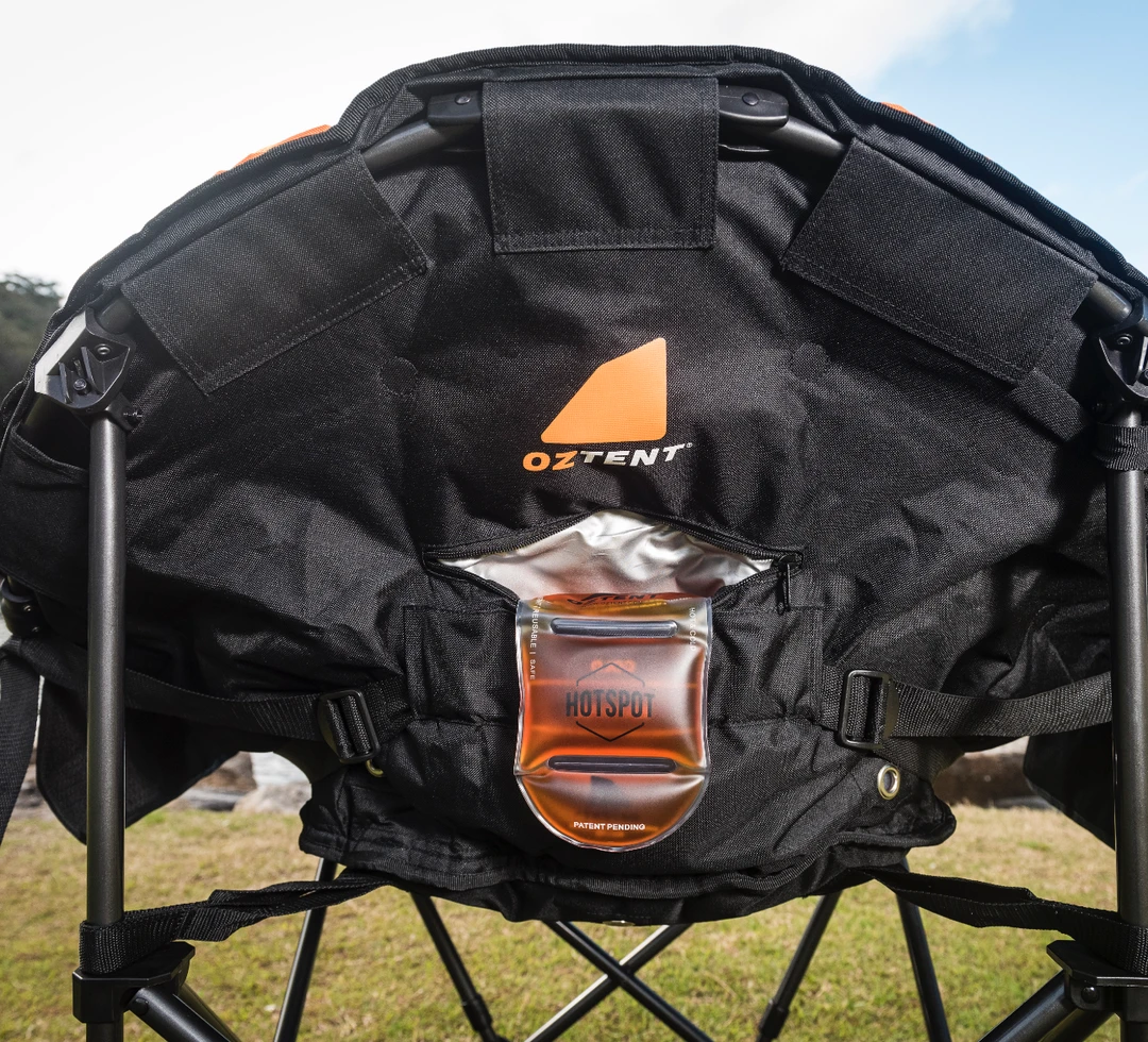 The OZTENT Koala HotSpot™ Lounge chair is the ultimate in luxury camp chairs for all seasons. It also incorporates our lumbar support system and is made with a super high quality construction using luxurious 600D diamond Ripstop polyester that is fully padded with a massive weight rating of 200Kg. You have an insulated drink and phone holder on one side and two mesh pockets on the other to store your other goodies. It also includes one HotSpot pouch. Then in the front we have added a hidden under seat pocket.